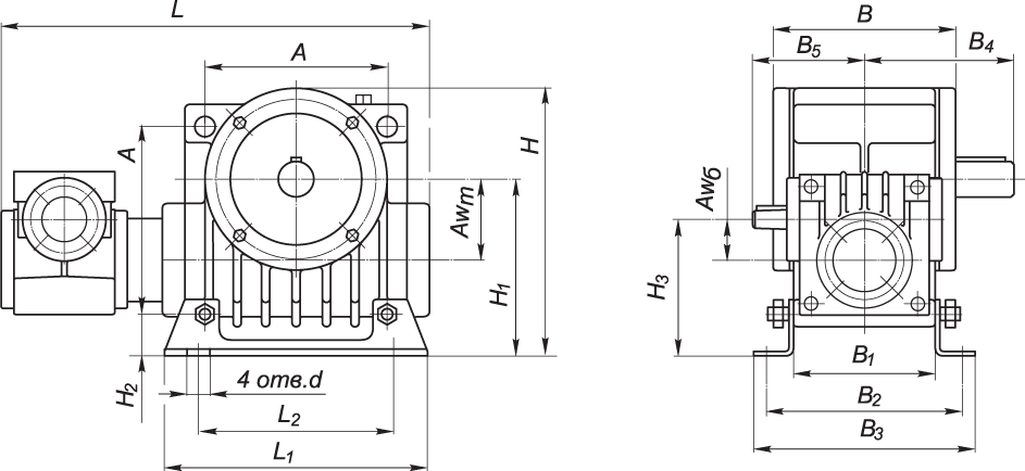 Габаритные и присоединительные размеры редукторов Ч2-100 – Ч2-160